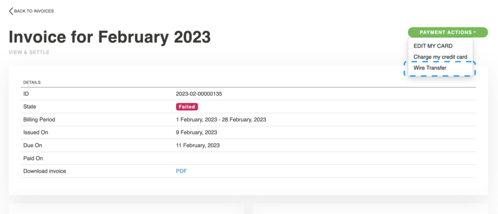 - We have added Wire Transfer as an additional payment option. See below how you can access it.